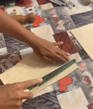 - Dopo il riposo in frigo, ho steso nuovamente l'impasto fino a ottenere uno spessore di circa 2 mm e ho tagliato la sfoglia in rettangoli con base di circa 2 cm