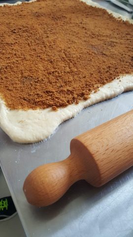 - Sciogliere la pasta madre con il latte tiepido e aggiungere l'uovo, la fari e il sale e mescolare. Aggiungere lo zucchero e impastare fino a che si assorba completamente. Unire il burro a temperatura ambiente e lavorare l'impasto fino a che non risulti assorbito e sia liscio e omogeneo. Formare una palle e riporre a riposare per circa 2 ore. Trascorso questo tempo, stendete l'impasto con il mattarello, spennellate con burro fuso e cospargete con abbondante zucchero di canna e la cannella.