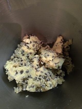 - A questo punto setacciate la farina con il lievito e il bicarbonato e inseritela nell'impasto. Lavorate poco con la frusta K o foglia e poi inserite le gocce di cioccolato. Distribuite bene gli ingredienti.