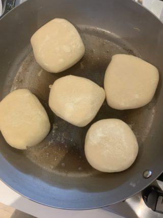 - Una volta raddoppiati, li ho cotti in una piastra imburrata da entrambi i lati fino a completa doratura. Per gustarli, dovrete tagliarli nel mezzo, dorarli su una piastra e farcirli con dolce o salato!