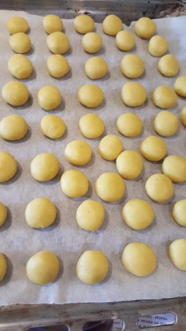 - Una volta trascorso il tempo di riposo in frigo, formate delle palline di circa 8 gr e ponetele a riposare sopra la teglia ricoperta di carta forno. Infornate a 170° per circa 15 minuti e poi lasciate raffreddare sulla griglia del forno.