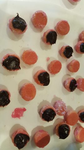 Si tratta di biscotti morbidi imbevuti di alchermes e farciti con una ganache al cioccolato.