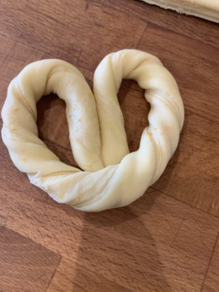 - ho poi chiuso l'impasto, girato e messo a riposare su una teglia con carta forno. Fate attenzione ai buchi perché devono essere aperti in modo da poter poi inserire la crema pasticciera.