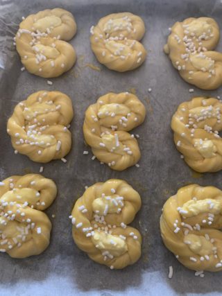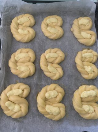 - Una volta lievitate ho inserito la crema pasticciera con la sacca da pasticcere nelle fessure. Per vedere come inserire la crema pasticciera, puoi guardare il video nelle note.