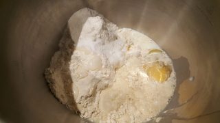 - Mettete nella planetaria la pasta madre e le due farine. Aggiungete, metà del latte, le uova e lo zucchero e fate andare con il gancio fino a che siano ben amalgamati. A questo punto potete finire di aggiungere il latte e subito dopo il sale. Infine aggiungete l'olio e i semini solo quando l'olio sarà ben assorbito.