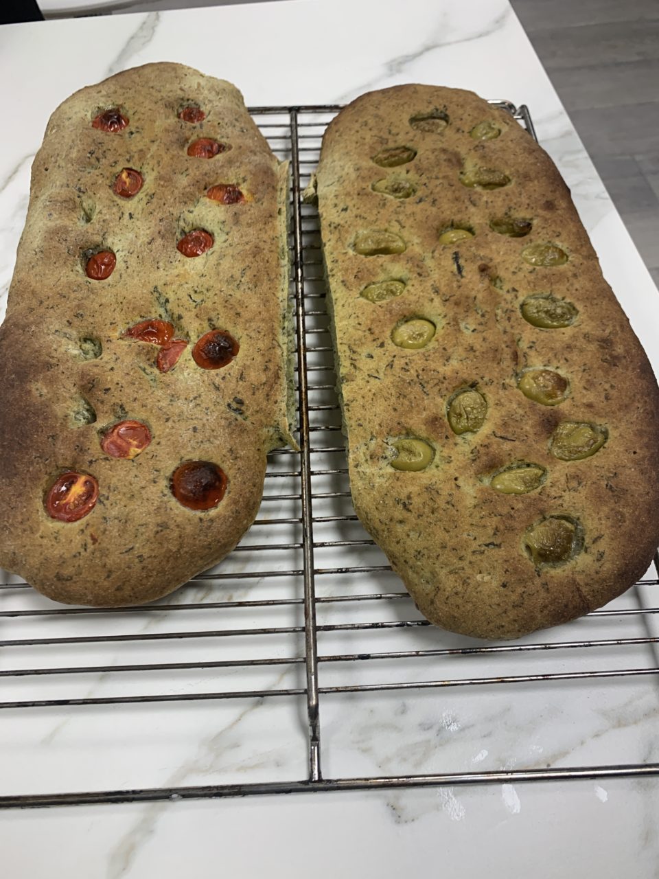 Abbiamo realizzato pizza, focaccia con olive e pane con i semini. Vi lascio qualche foto della produzione.