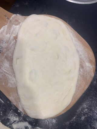 - Procedere con la formatura: insemolare il piano di lavoro e premere ai bordi l'impasto. Poi con i polpastrelli, allungarlo delicatamente.