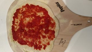 - Porzionate dei panetti di circa 200/250 gr ciascuno. Infarinate la spianatoia e stendete l'impasto delicatamente stando attenti a non scorporare l'aria. Lo spessore dell'impasto deve essere inferiore a 1 cm. Se occorre aiutatevi con il mattarello. Condite la pizza con la salsa di pomodoro. Infornate a temperatura max (circa 270°C) nel forno già caldo per circa 10/12 minuti, dopo di che aggiungete i condimenti e infornate per altri 2/3 minuti.