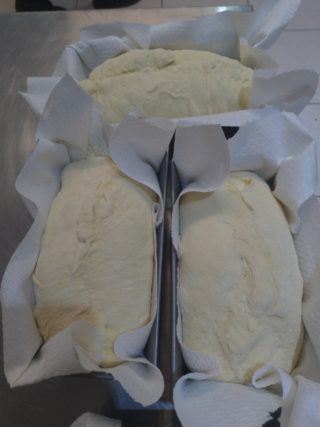 - Per prima cosa ho fatto autolisi con 500 gr di semola e 350 gr di acqua. Ho impastato grossolanamente fino a far assorbire tutta l'acqua senza lasciare residui di farina. Ho lasciato riposare per circa 30 minuti e poi ho aggiunto il licoli (lievito madre liquido) e impastato fino a incordare. Ho aggiunto il sale e incordato nuovamente e l'olio. Ho incordato e ho ottenuto un impasto liscio e omogeneo che ho fatto raddoppiare in massa. Ho poi formato la pagnotta e posto a riposare in un stampo da plumcake ricoperto di un foglio di carta tessuto ben infarinato. Ho dato la forma in questo modo: ho steso l'impasto a forma di rettangolo stando attenta a non sgonfiarlo troppo, ho portalo la punta destra dal basso all'alto e così ho fatto con la punta sinistra. ho poi arrotolato l'impasto delicatamente e chiuso in alto.