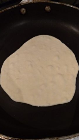 - Trascorso il tempo di riposo, formare 8 palline. Stendetele con un mattarello fino a ottenere un diametro di 22 cm circa e uno spessore di 2 mm. Nel frattempo mettete una padella antiaderente a scaldare nel forno e cuocete le piadine 1 minuto per lato. Con una forchetta schiacciate le bolle che i formeranno. Impilate le tortillas una sopra l'altra e copritele con un canovaccio in modo da mantenerle al caldo.